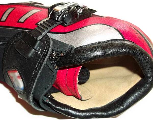 Schuhkonstruktion: Aussenschale: aus 100% CFK (Kohlenstoff-verstärkter-Kunststoff), wärmeverformbar und damit individuell anpaßbar. (erfordert eine spezielle Dienstleistung bei einem Spezialisten), Innenauskleidung: echtes Leder