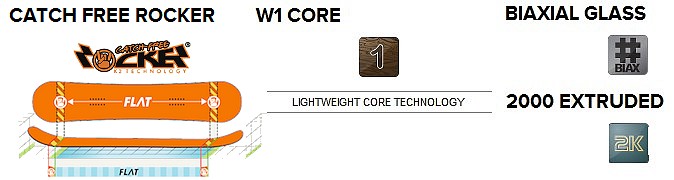 - Baseline: K2 catch-free-rocker: 5% Rocker an den tips + 95% Flat in der Mitte