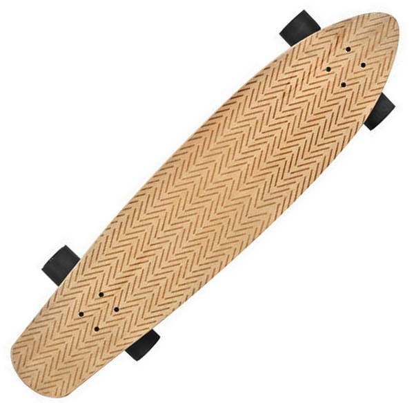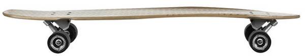 - Deck: Material: 6-ply Canadian Maple Wood + Bambus base sheet, no Griptape textured top, Shape: mellow concave, leichtes kicktail, bend: flat, direktional, Abmessungen: 38,75 inch x 9 inch = 96 x 25 cm, Wheelbase 67 cm