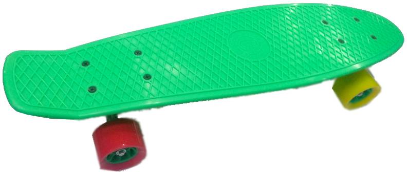 - Deck: Material: glasfaserverstärktes Polypropylen, Abmessungen: 22.5 inch x 6 inch (565mm x 145mm), Tailkick, Flex: medium, Oberfläche:rautenförmige Struktur: dadurch kein Griptape erforderlich