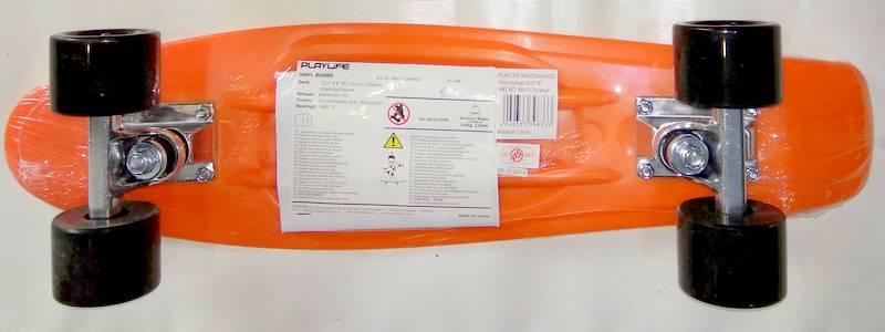 - Deck: Material: glasfaserverstärktes PVC, Abmessungen: 22.5 inch x 6 inch (565mm x 145mm), Tailkick, Flex: medium, Oberfläche:rautenförmige Struktur: dadurch kein Griptape erforderlich
