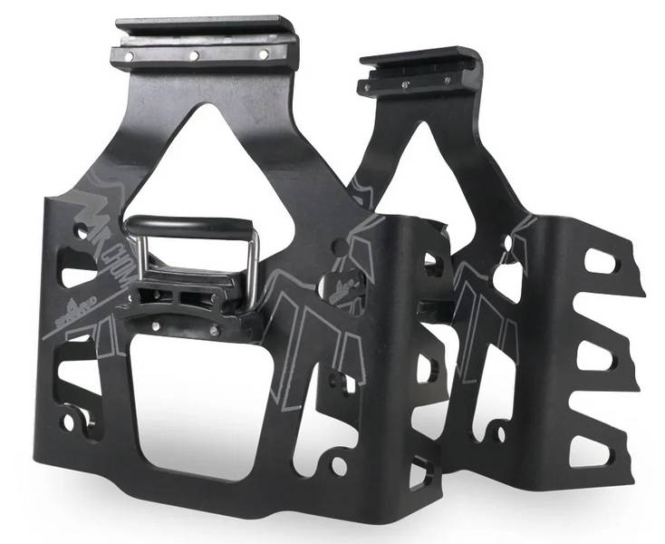 When the skin track gets icy and steep, drop in your Mr. Chomps – our first class crampon for pin mount bindings. Lean forward to easily position crampons under the touring pin and remove the same way. Pull up on the crampon riser to keep the full depth of teeth in the snow when using your long climbing wire.
